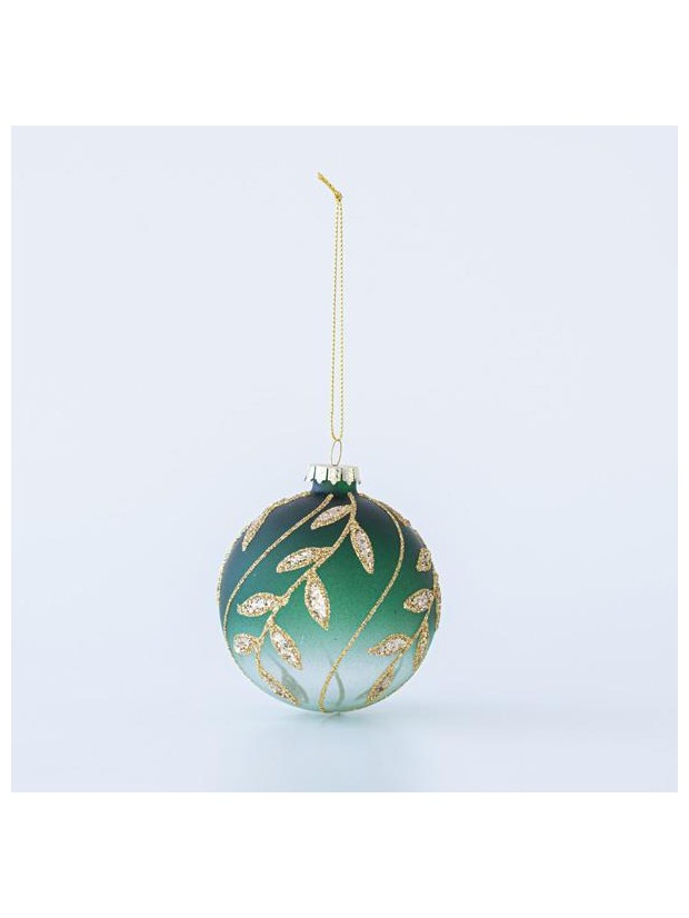 Γυαλινη Μπαλα, Πρασινη, με Χρυσα Φυλλα, σετ 4τμχ, 10cm