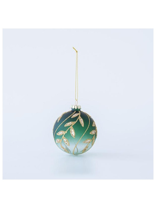 Γυαλινη Μπαλα, Πρασινη, με Χρυσα Φυλλα, σετ 4τμχ, 8cm