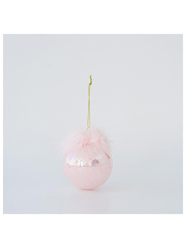 Γυαλινη Μπαλα, ροζ Ιριδιζουσα, με Πουπουλα, σετ 4τμχ, 10cm