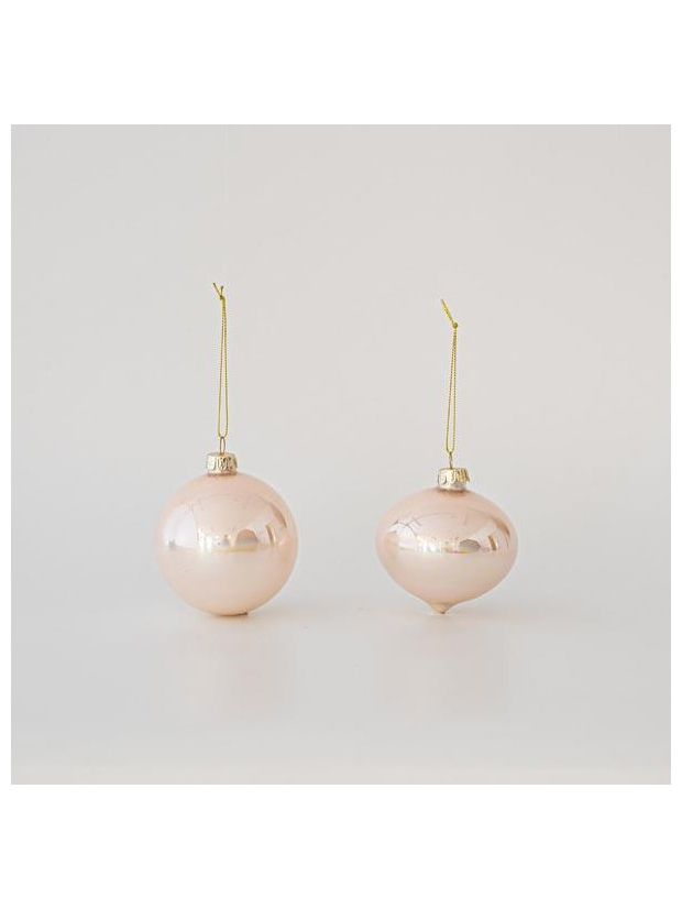 Γυαλινη Μπαλα, Ροζ, Περλε, 2 Σχηματα, σετ 4τμχ, 8cm