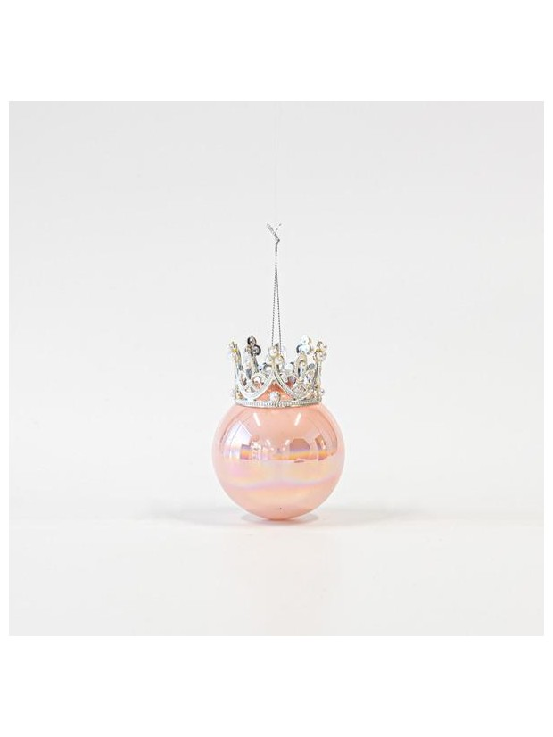 Γυαλινη Μπαλα, ροζ Περλε, με Κορωνα, σετ 4τμχ, 8x10cm