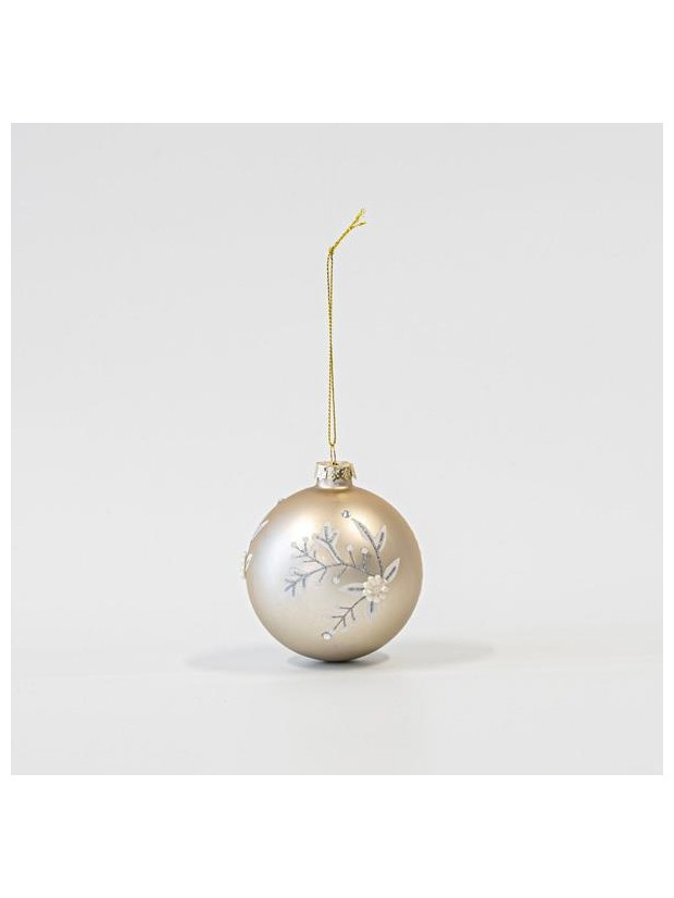 Γυαλινη Μπαλα, Σαμπανι, με Λευκα Λουλουδια, σετ 4τμχ, 10cm