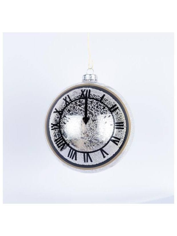 Γυαλινη Μπαλα, Σαμπανι, με Σχεδιο Ρολοι, σετ 2τμχ, 12cm