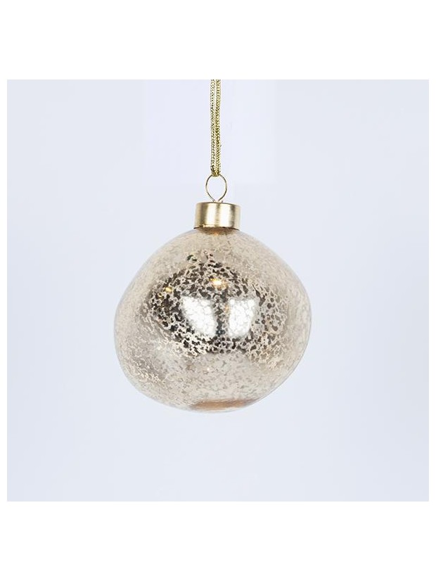 Γυαλινη Μπαλα, σε Σχημα Πετρας, Διαφανη Σαμπανι, σετ 4τμχ, 8cm