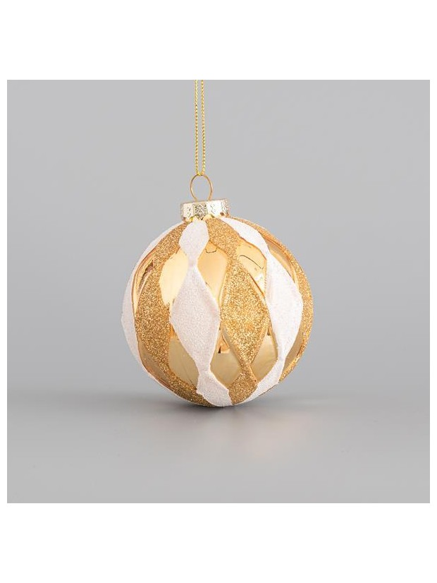 Γυαλινη Μπαλα, Χρυση με Λευκα Σχεδια, 8cm