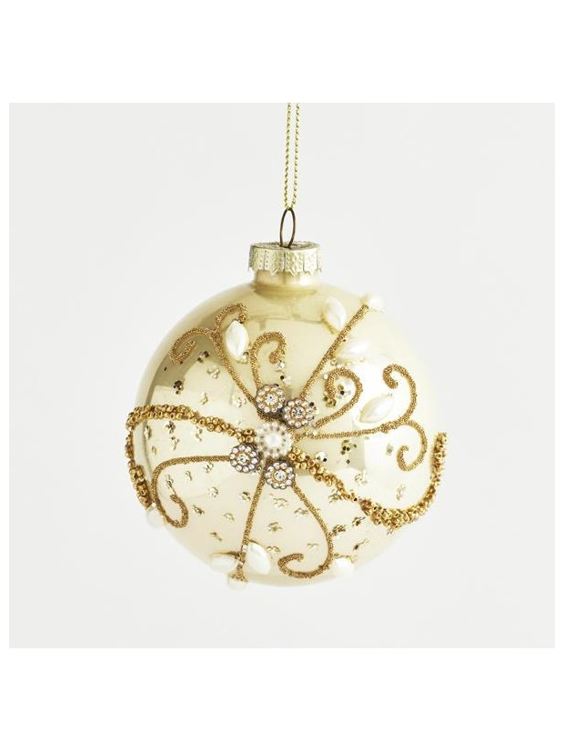Γυαλινη Μπαλα, Χρυση με Σχεδιο , σετ 4τμχ, 8cm