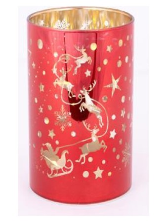 Γυαλινο Διακοσμητικο, Kokkino, Φωτιζομενο, με Αστερακια, 9x16cm