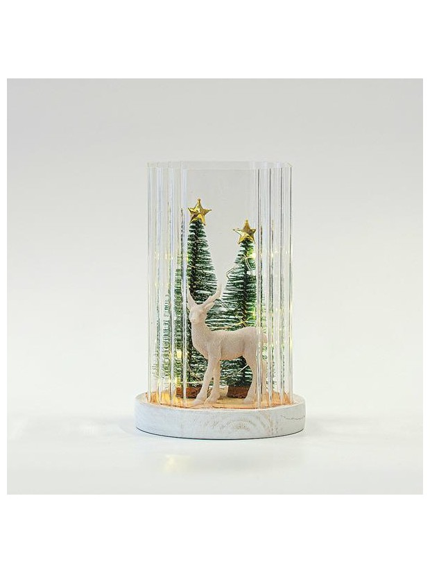 Γυαλινο Φωτιζομενο Διακοσμητικο, με Ταρανδο και Δεντρα στο Εσωτερικο Του, 11,5x11,5x18,5cm