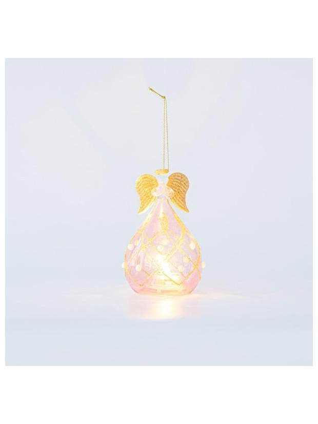 Γυαλινο Κηροπηγιο, Αγγελος, Ροζ, 9x20cm