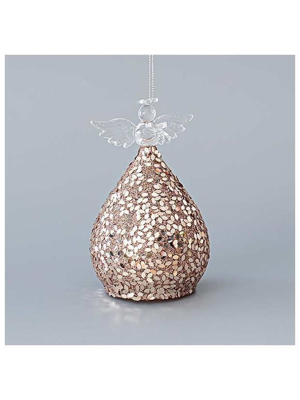 Γυαλινο Στολιδι, Αγγελος, Διαφανο-Μπρονζε, σετ 2τμχ, 13cm