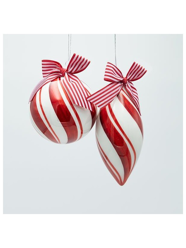 Γυαλινο Στολιδι, Candy, με Φιογκο, 2 Σχεδια, σετ 4τμχ, 10cm