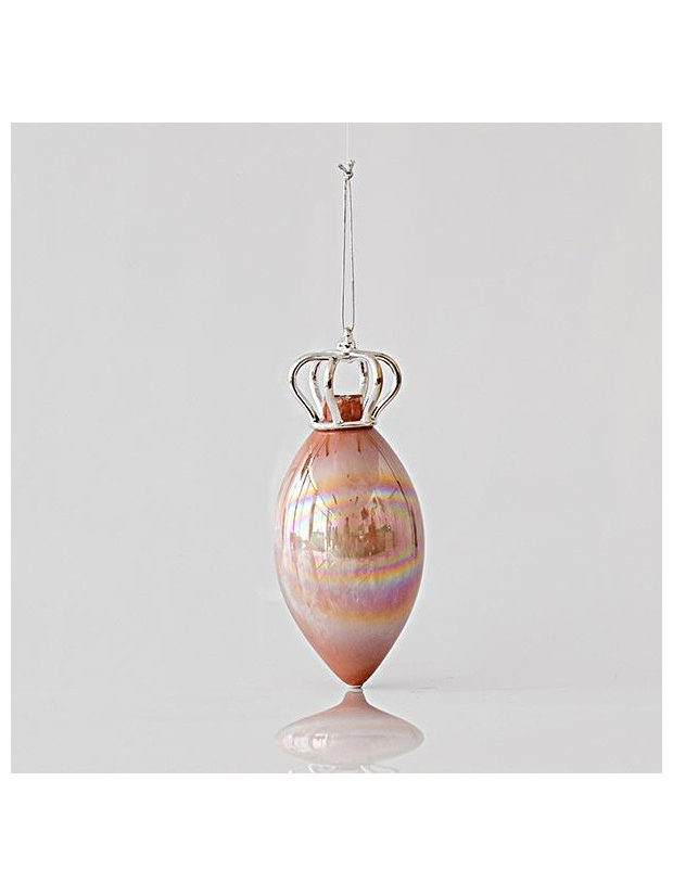 Γυαλινο Στολιδι, Ιριδιζον Ροζ, με Κορωνα, σετ 2τμχ, 6x14,8cm