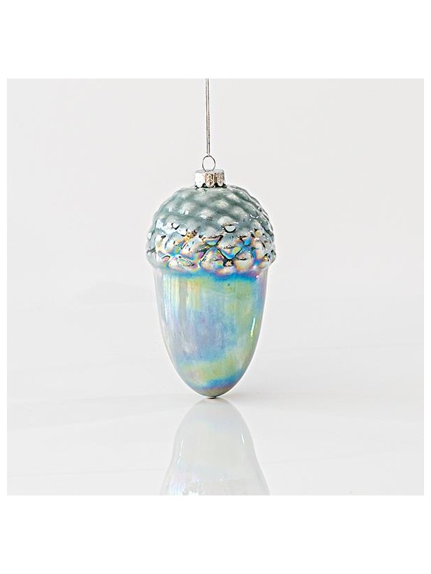Γυαλινο Στολιδι, Ιριδιζουσα Κουκουναρα, Μεντα, σετ 2τμχ, 7,9x14cm