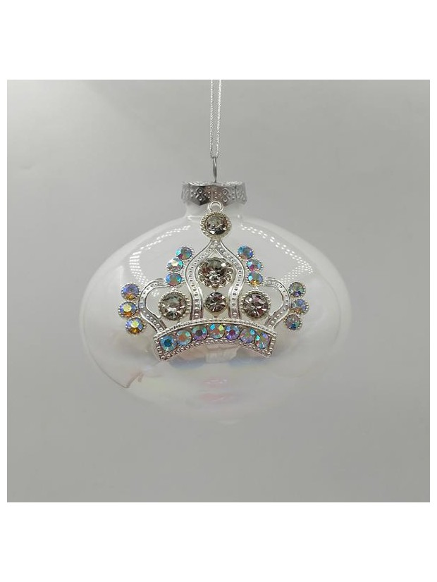 Γυαλινο Στολιδι, Κρεμμυδι, Ασπρο με Κορωνα, σετ 4τμχ, 10cm