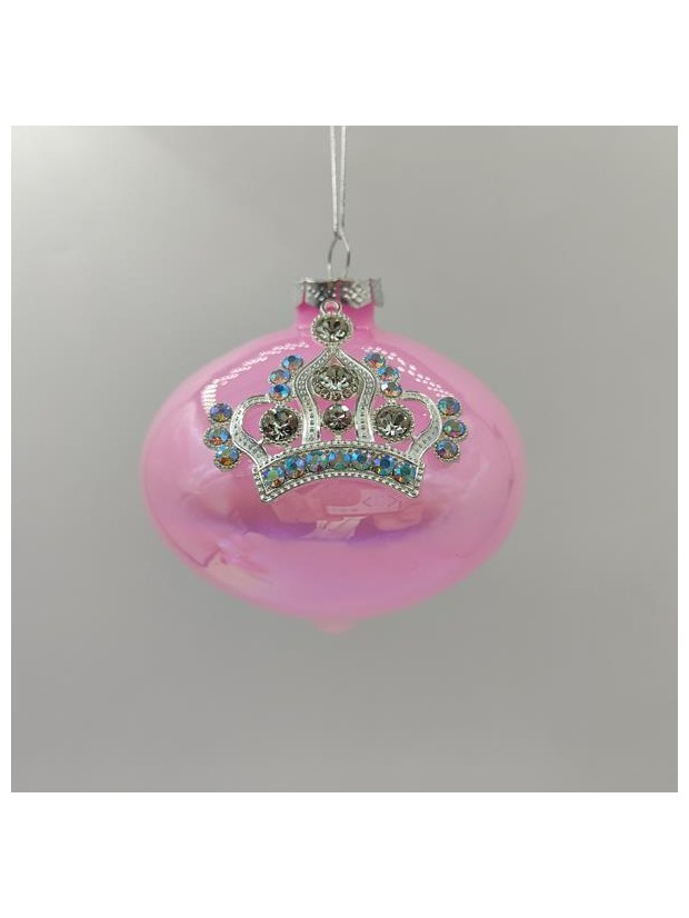 Γυαλινο Στολιδι, Κρεμμυδι, ροζ με Κορωνα, σετ 4τμχ, 10cm