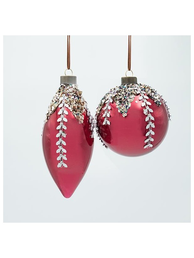 Γυαλινο Στολιδι, Μπορντο με Ασημι Σιριτι, 2σχεδια, σετ 4τμχ, 10cm