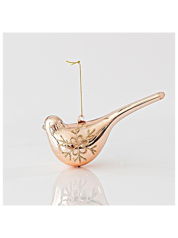 Γυαλινο Στολιδι, Πουλακι, Σαμπανι, σετ 4τμχ, 15,3x5,3x7,3cm