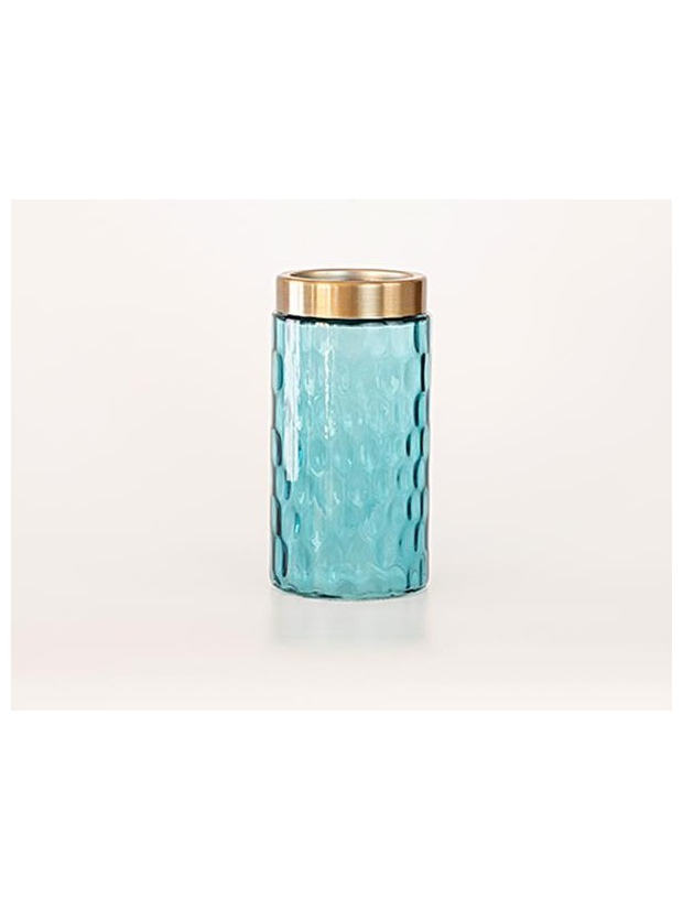 Γυαλινο Βαζο, Γαλαζιο, με Χρυσο, 10x11x22cm