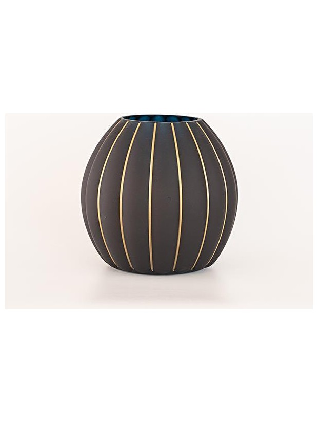 Γυαλινο Βαζο, με Χρυσες Γραμμες, 10,5x21,5x21cm