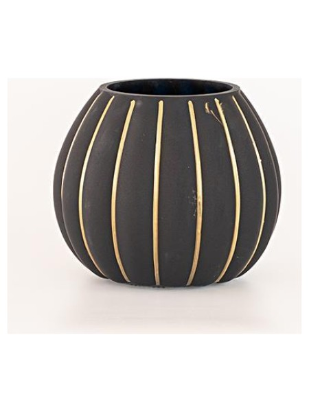 Γυαλινο Βαζο, με Χρυσες Γραμμες, 10x15x15cm