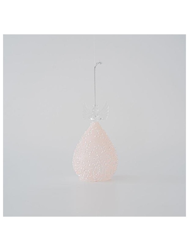 Γυαλινος Αγγελος, Διαφανος με Ροζ, 15cm
