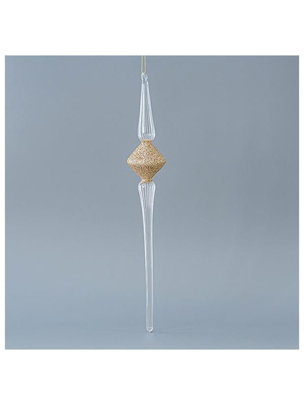 Γυαλινος Σταλακτιτης, Διαφανος, με Χρυσο, σετ 2τμχ, 6,5x40,5cm