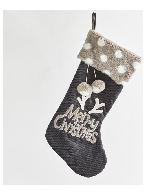 Καλτσα, Γκρι, Βελουδινη, με πον Πον, 28x5x55cm