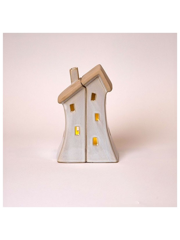Κεραμικα Σπιτακια με Παραθυρο Καρδια, Φωτιζομενα, off White, 11x7x16.7cm