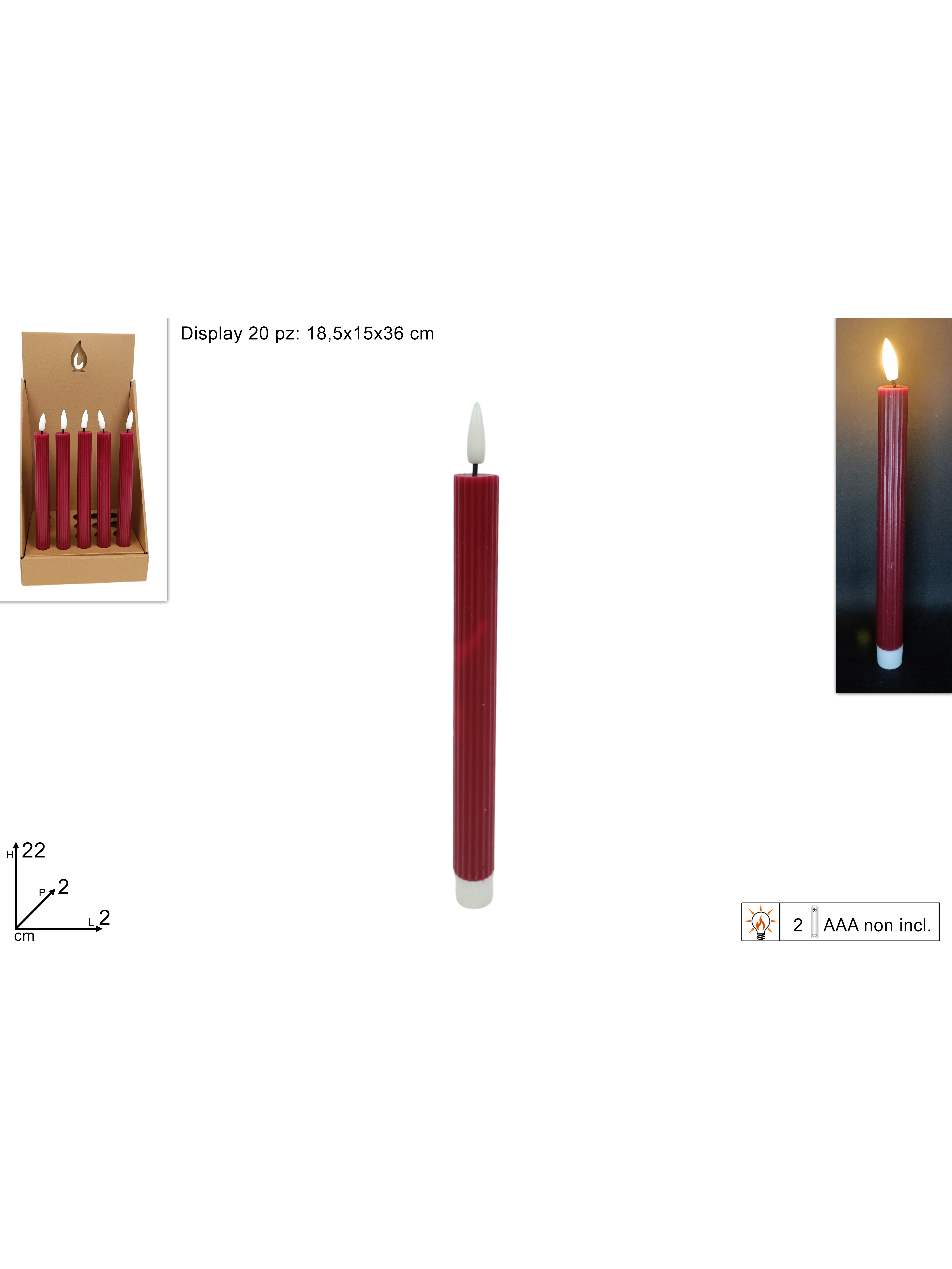 Κερί για κηροπήγιο σε κόκκινο χρώμα με led φως 22x2x2cm