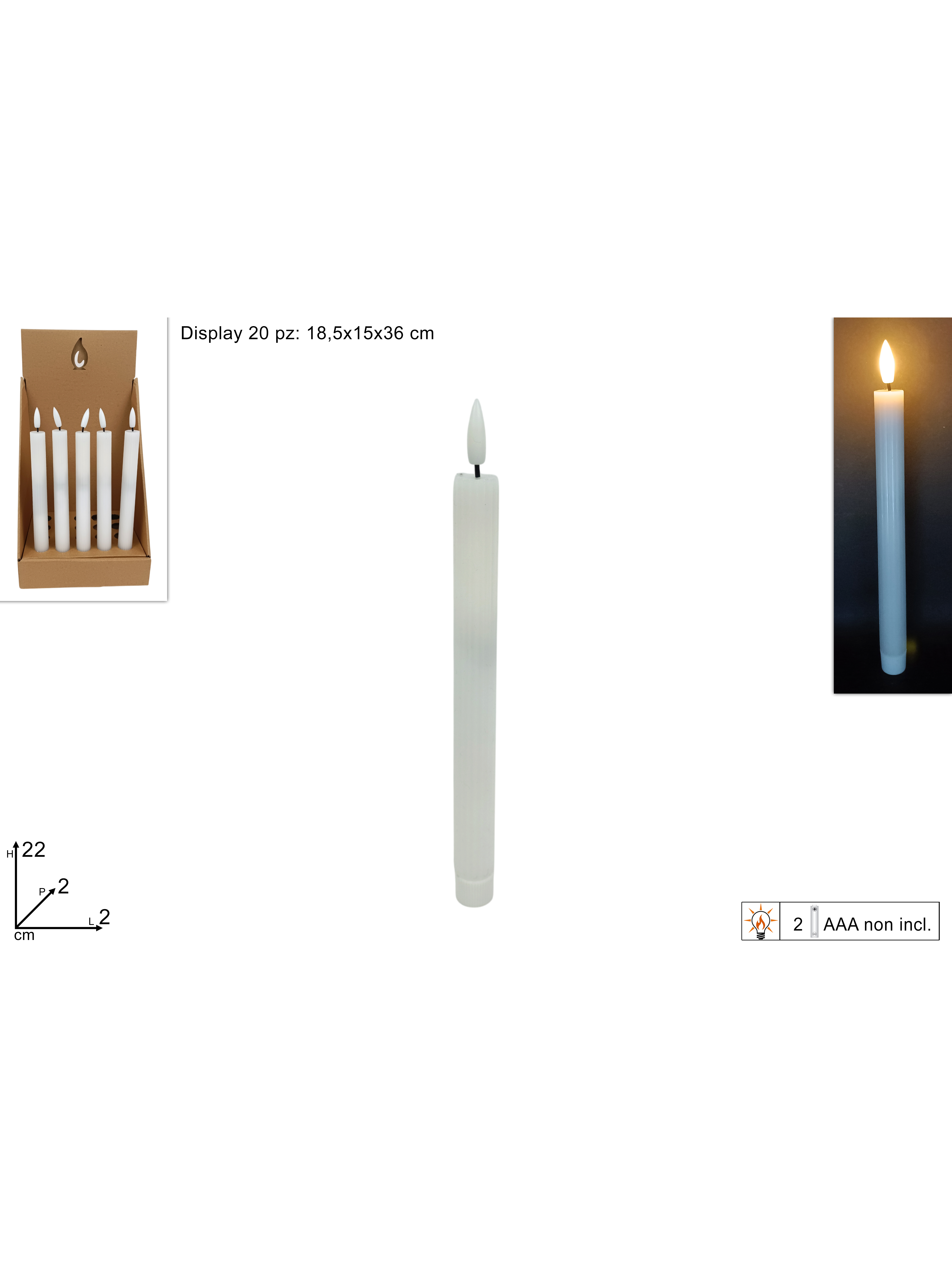 Κερί για κηροπήγιο σε λευκό χρώμα με led φως 22x2x2cm