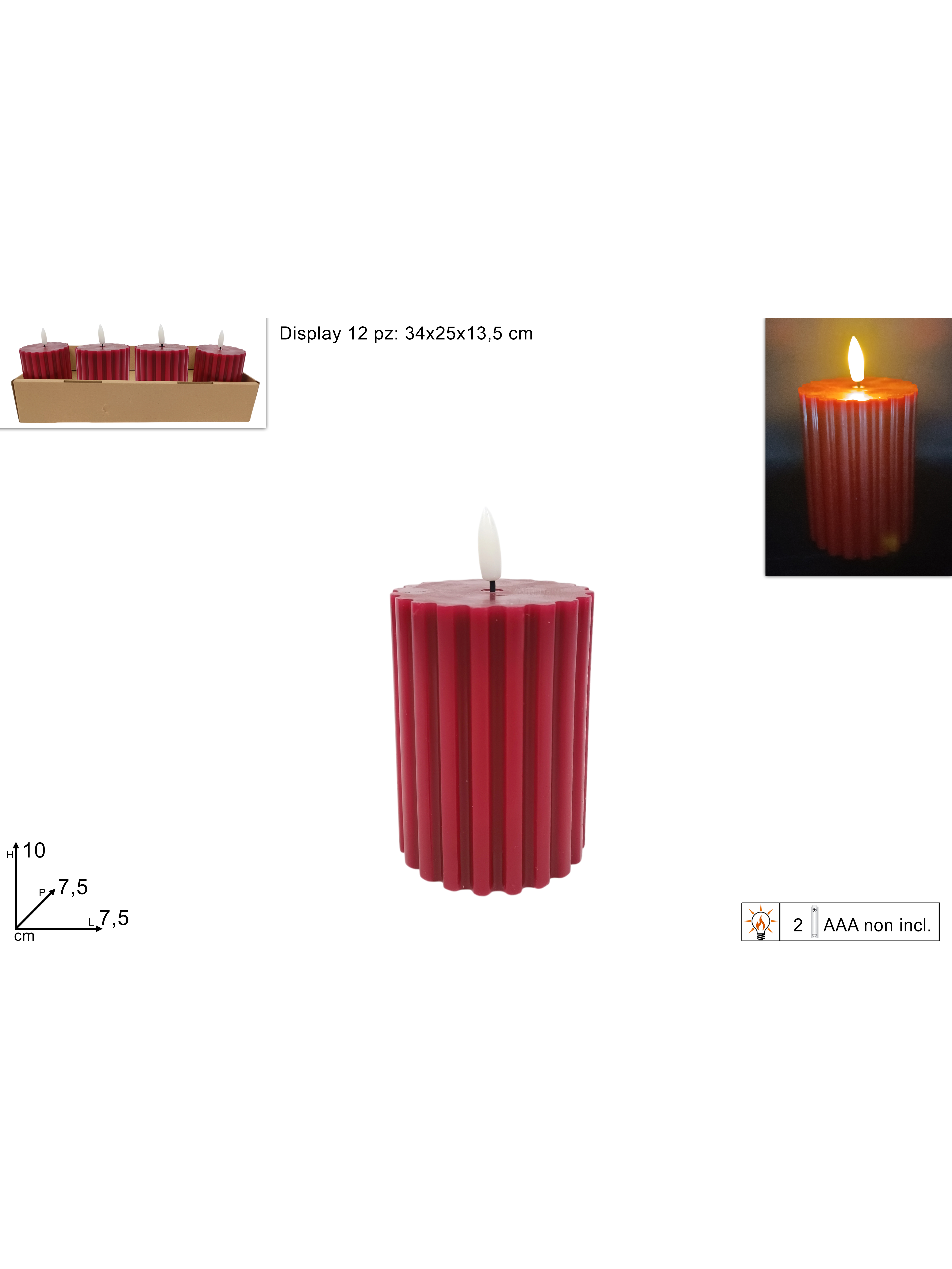 Κερί κορμός ανάγλυφο με led φως σε κόκκινο χρώμα 7.5x10cm