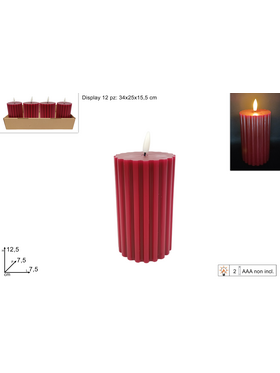 Κερί κορμός ανάγλυφο με led φως σε κόκκινο χρώμα 7.5x12.5cm