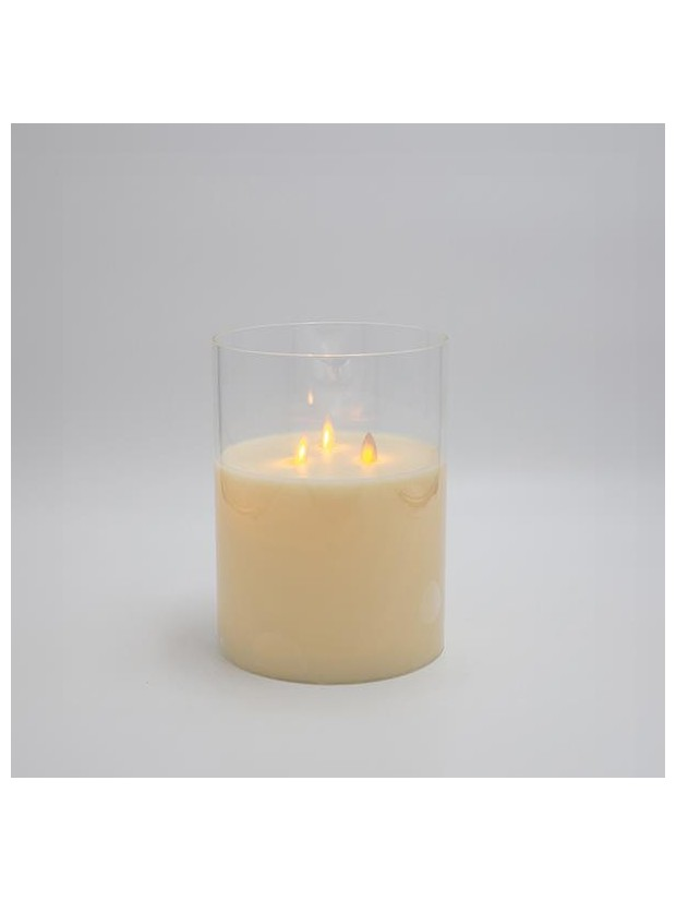 Κερι Μπαταριας, με 3 Φλογες και Γυαλι, Ιβουαρ, με Χρονοδιακοπτη, 15x20cm