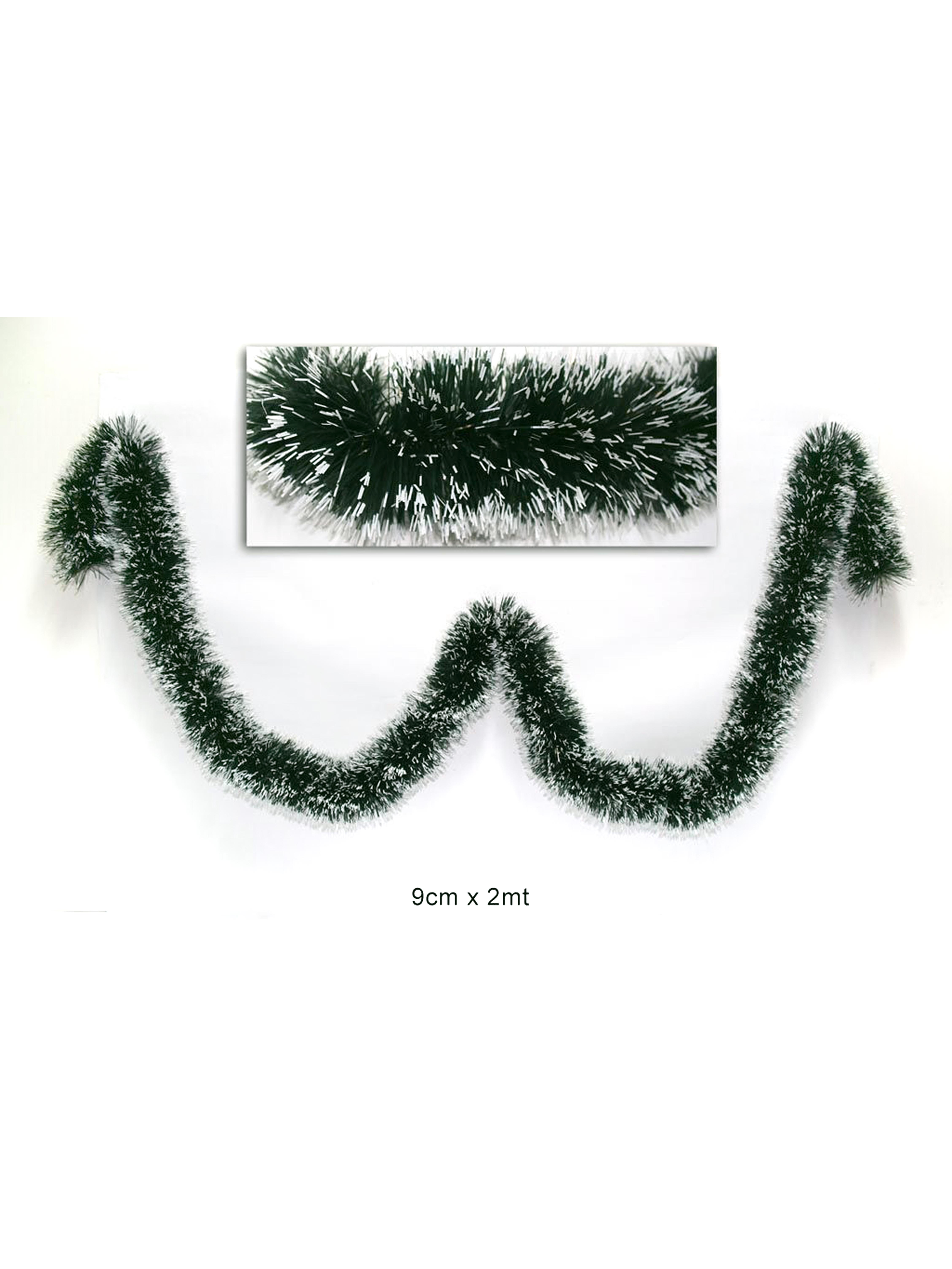 Χριστουγεννιάτικη γιρλάντα σε πράσινο χρώμα με χιονισμένες άκρες 9cm x 2m