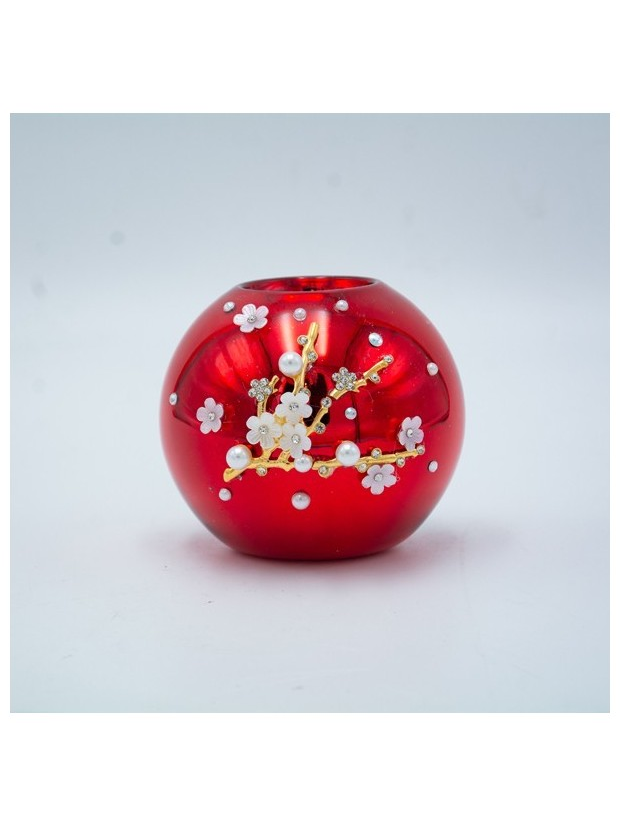Κηροπηγιο, Κοκκινο, με Λευκα 3d Λουλουδια, 8.5x10cm
