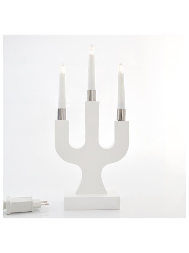 Κηροπηγιο Λευκο, με 3 Κερακια led Θερμα Λευκα, με Μετασχηματιστη, Ξυλινο, 17,5x7x38,5cm