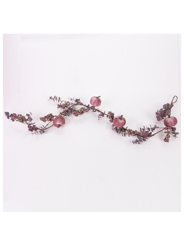 Κλαδα με ροζ Βελουδινες Κολοκυθες και Μπορντο Berries, 120cm