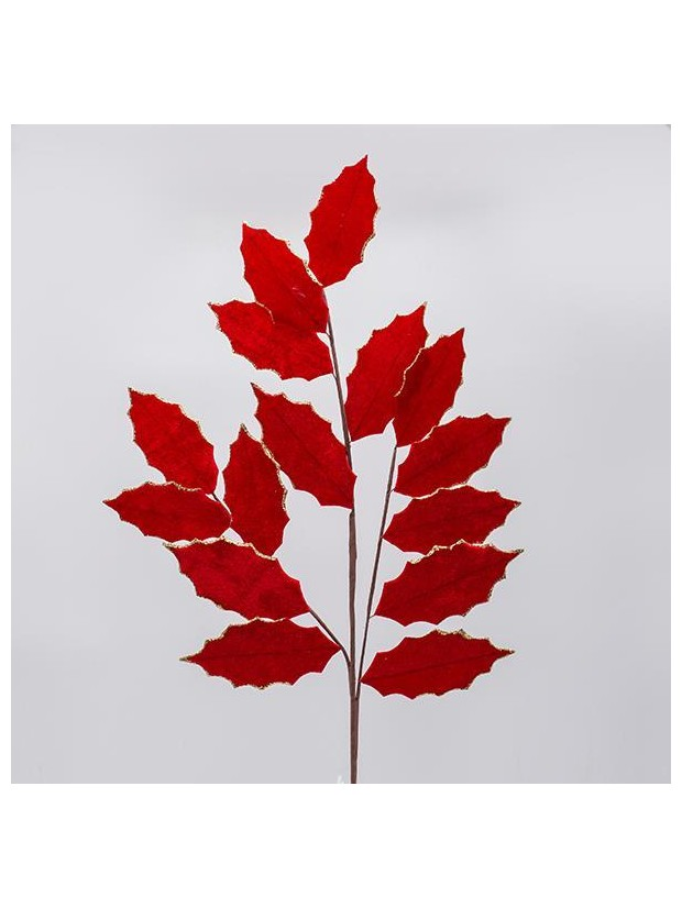 Κλαδι με Κοκκινα Βελουδινα Φυλλα Γκι, 87cm