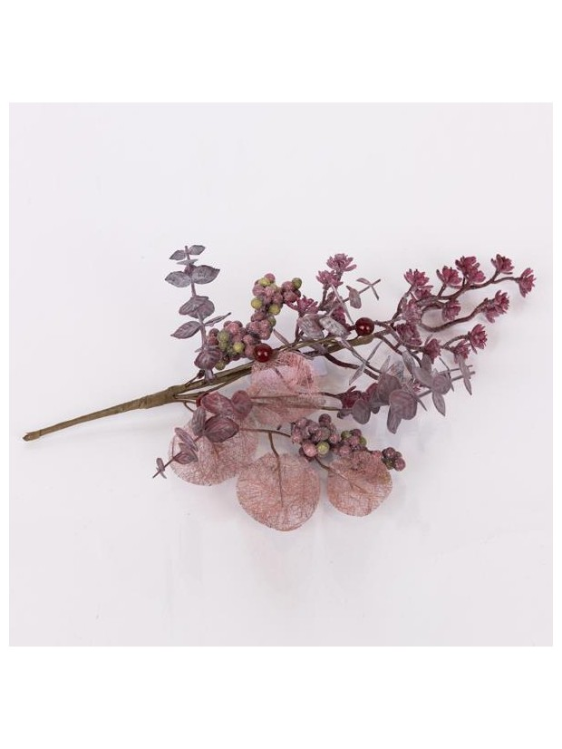 Κλαδι με Μπορντο Berries και Διακοσμητικα σε Σαπιο Μηλο, 43cm
