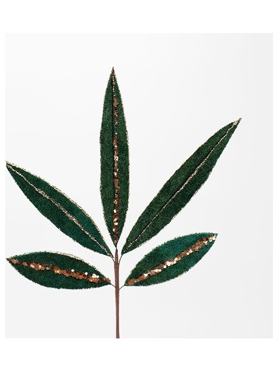 Κλαδι με Σμαραγδι Φυλλα και Σαμπανι Λεπτομερειες, 55cm