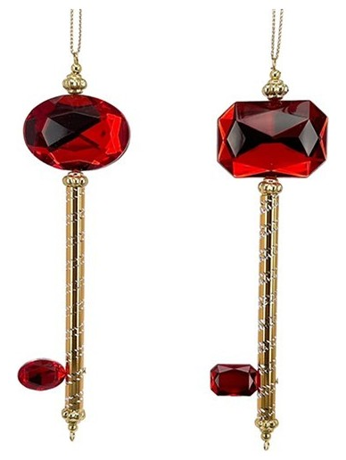 Κλειδι Πλαστικο, Χρυσο με Κοκκινο Πετραδι, 2 Σχεδια, 4,3x1.3x15.5cm
