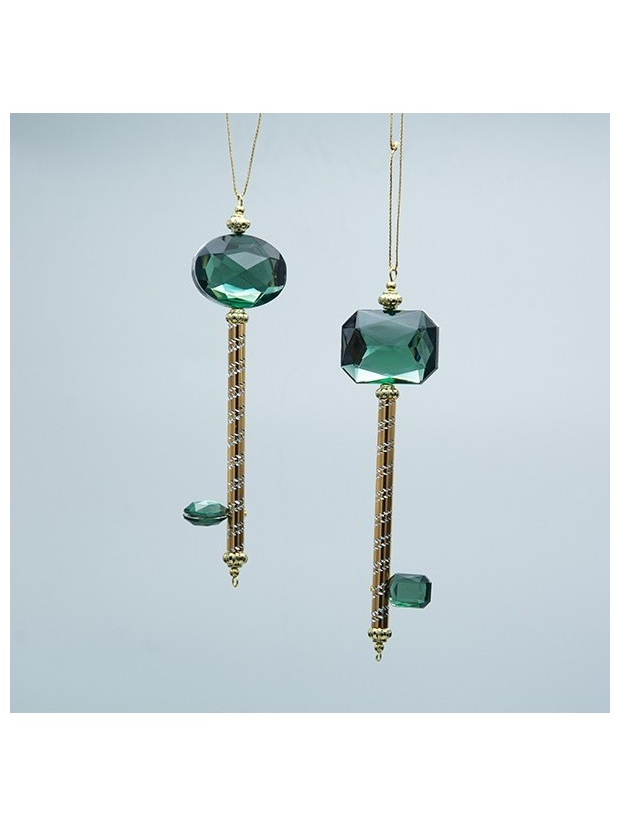 Κλειδι Πλαστικο, Χρυσο με Σμαραγδι Πετραδι, 2 Σχεδια, 4.3x1.3x15.5cm