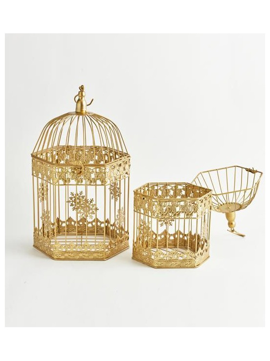 Κλουβι, Μεταλλικο, Εξαγωνο, Χρυσο, σετ 2 Τμχ, 26x23x43cm και 20x18x34cm