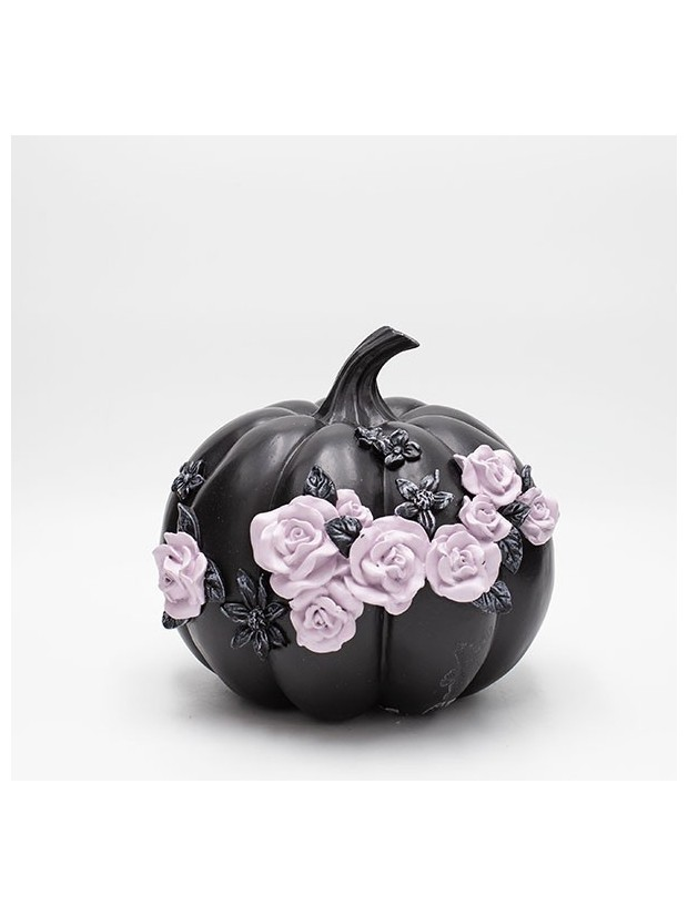 Κολοκυθα Πολυρεζιν, Μαυρη, με ροζ Τριανταφυλλα, Halloween, 21x21.5x18.8cm