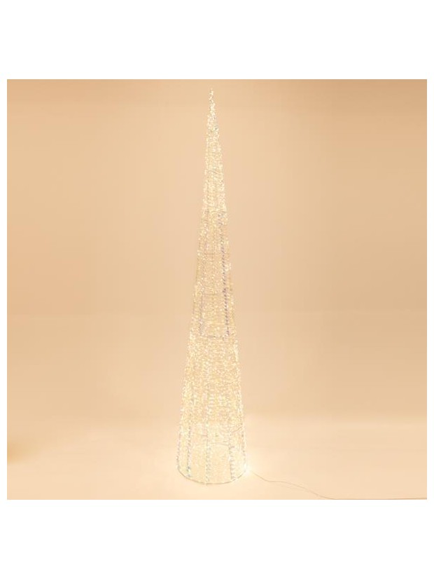 Κωνος Φωτιζομενος Ιριδιζων 280cm, 3200 Θερμα Led, 31v Μετασχηματιστη, Timer, Ασημι Χαλκινο Καλωδιο, Θερμο Λευκο Led, Προεκταση Παροχης 5m, Ip44