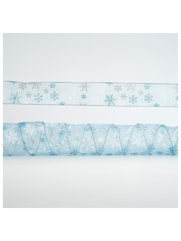 Κορδελα Διαφανη με Ασημι και Μπλε Χιονονιφαδες, 6,35cm, 10y