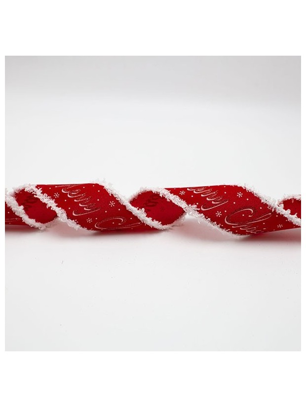 Κορδελα, Κοκκινη με Λευκες Χνουδωτες Ακρες, 914x6.3cm