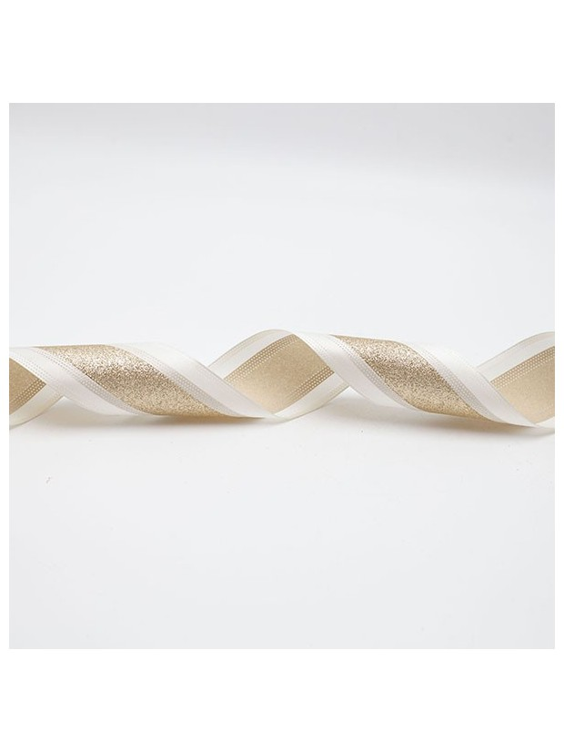 Κορδελα Κρεμ Σατεν, με Σαμπανι Glitter, 914x6.3cm