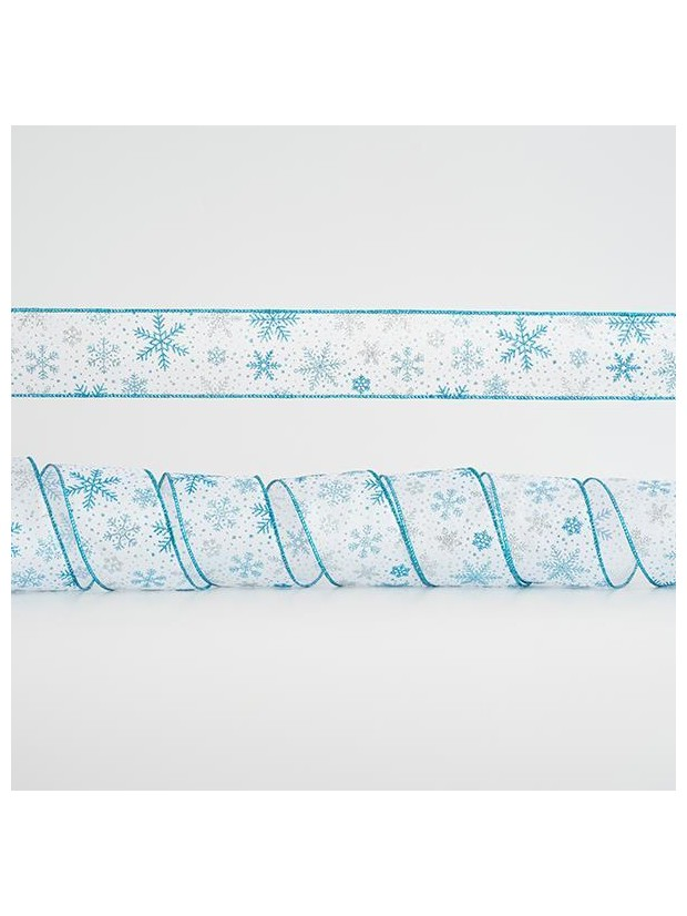 Κορδελα Λευκη με Ασημι και Μπλε Χιονονιφαδες, 6,35cm, 10y