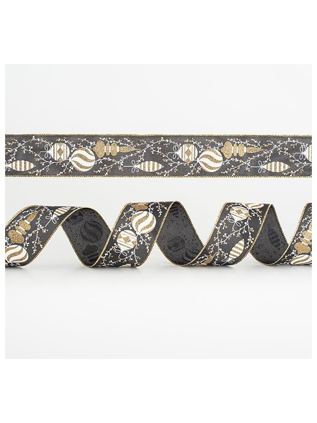 Κορδελα Μαυρη, με Λευκα και Χρυσα Στολιδια, 6,35cm, 10y